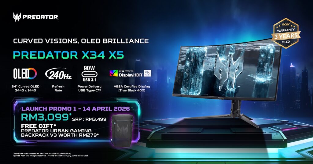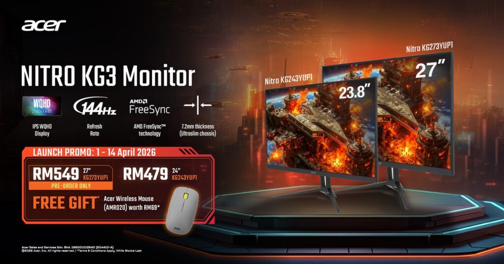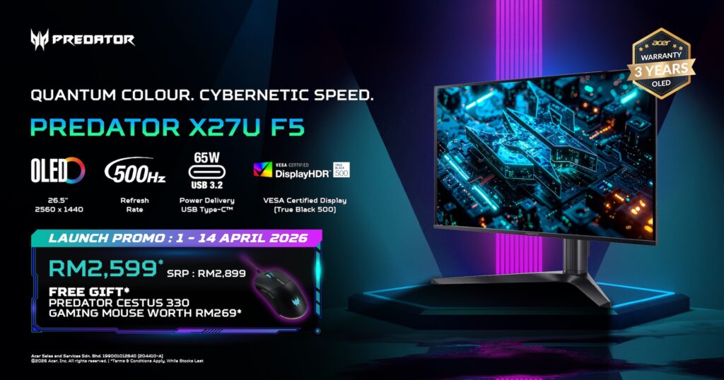 The Predator X27U F5, Predator X34 X5 and Nitro KG243YU P1 are now available in Malaysia via authorised Acer resellers and the Acer eStore, while pre-orders for the Nitro KG27U P1 are open until April 20, 2026. Acer is also offering limited-time promotions for purchases made before April 14, 2026, with all Predator models backed by a three-year on-site warranty including OLED burn-in protection, while the Nitro series comes with a three-year pickup and return warranty.