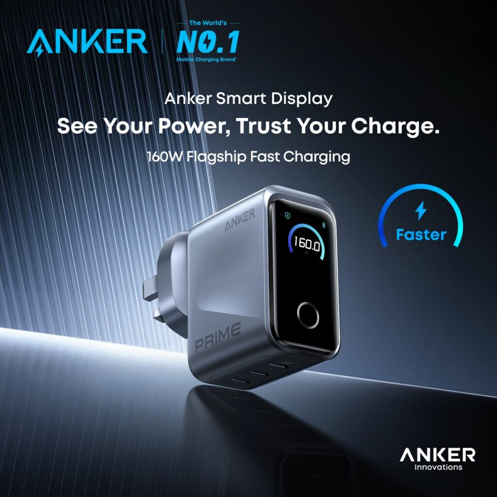 Anker has introduced its latest smart charging lineup in Malaysia, headlined by the Anker Prime Smart Display Charger 160W A2687 — the brand’s most advanced wall charger to date and a CES 2026 Innovation Awards Honoree.