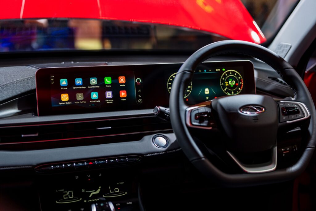 Inside, the TIGGO CROSS features dual-zone climate control with a touchscreen panel for precise comfort adjustments. The 20.5-inch infotainment display integrates seamlessly with Apple CarPlay and Android Auto, while a Voice Assistant handles commands such as temperature control, calls, and music selection. The SUV also supports wireless phone charging, steering wheel audio controls, multiple USB ports, and Bluetooth connectivity. Functional roof rails add to its adventurous spirit, ready for everything from sports gear to weekend travel essentials.
