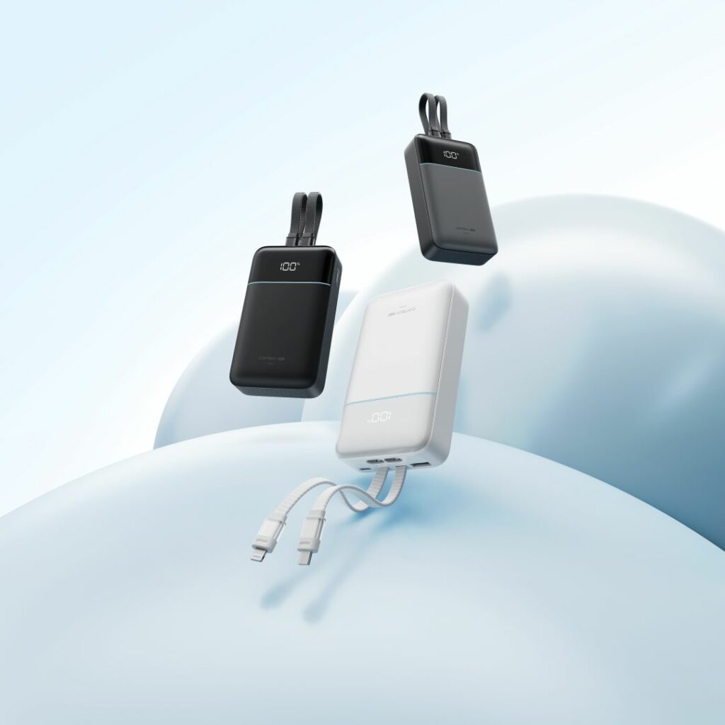 For users who switch between Android and Apple devices, the CP24 Power Bank with Dual Built-in Cables takes convenience further by including both a USB-C cable and an Apple MFi-certified Lightning cable. This eliminates the need to carry separate charging cables, especially useful for travellers and multi-device users. This version is even lighter at 359.2g and carries CCC safety certification.