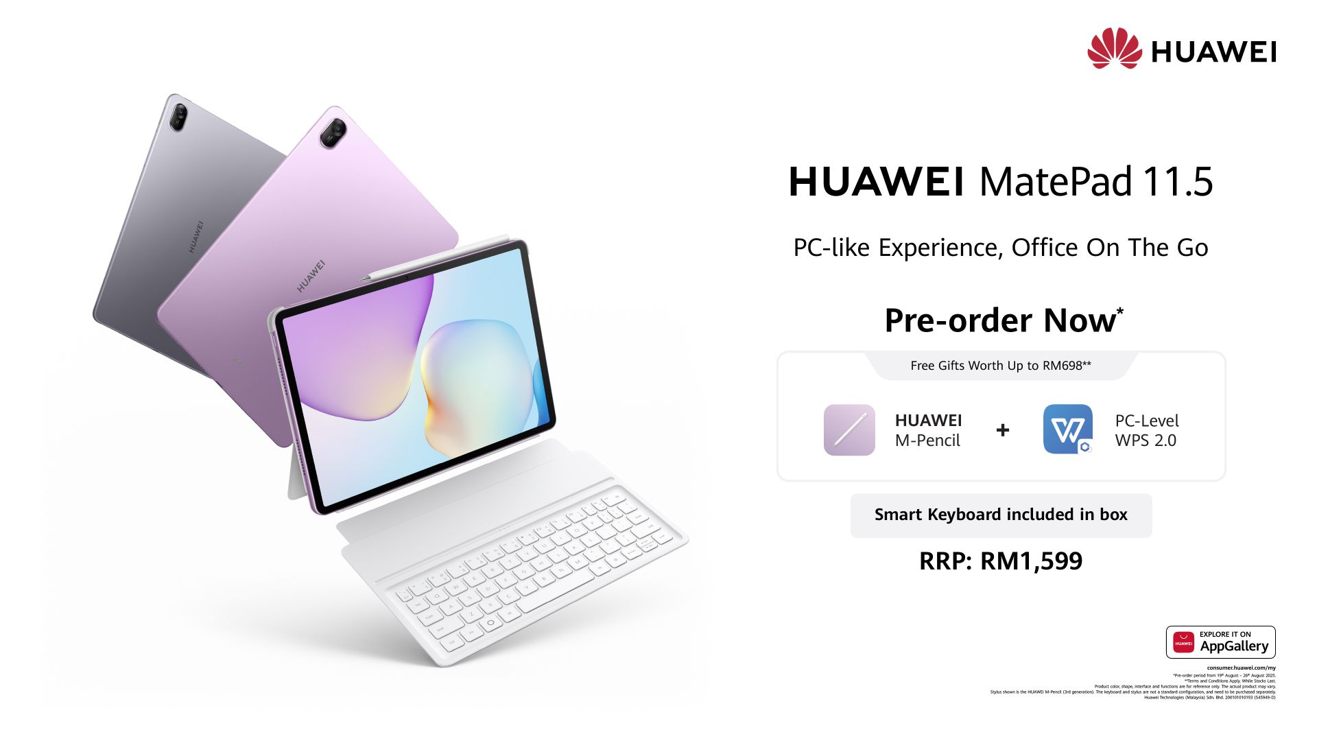 Customers can preorder the Huawei MatePad 11.5 PaperMatte Edition 2025 starting today till 26 August for the price of RM1599 at Huawei Experience Stores and online channels, customers will receive exclusive free gifts worth up to RM698 during the preorder period.