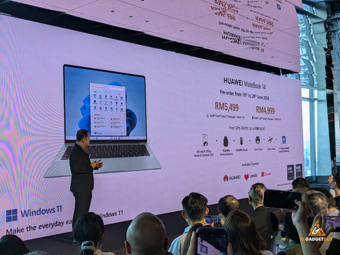 Available in Green (Intelยฎ Core™ Ultra processor 7) at RM5,499 and Grey (Intelยฎ Core™ Ultra processor 5) at RM4,999, the MateBook 14 comes with free gifts worth up to RM1,614 for pre-orders.