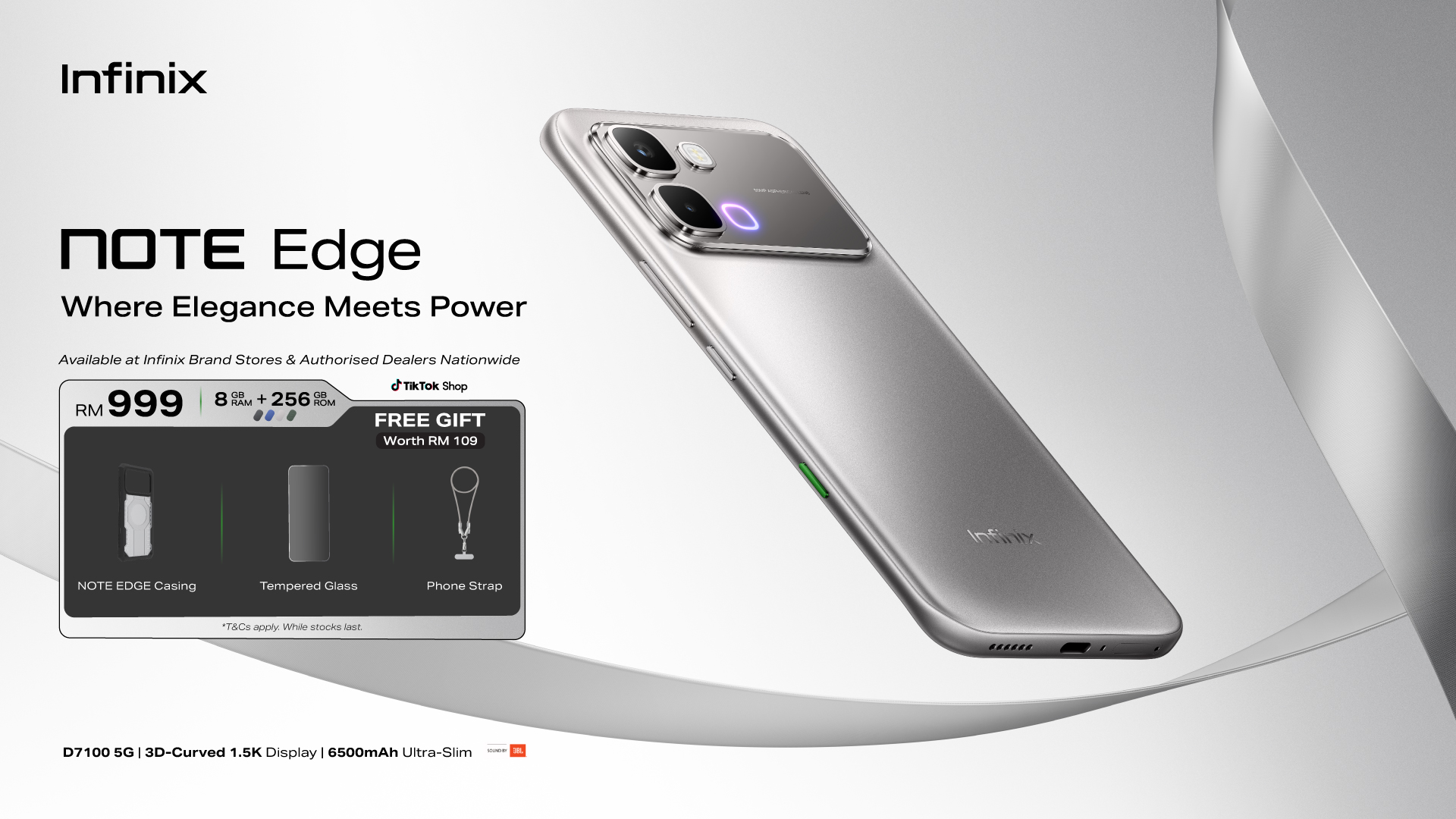 Priced at RM999, the Infinix NOTE Edge is positioned as a stylish yet capable mid-range smartphone that caters to young urban professionals who value design, battery life, and performance. The device goes on sale from Wednesday, 4 February 2026, available through Infinix’s official TikTok Shop online store, as well as Infinix Brand Stores and authorised dealers nationwide. Buyers will receive free gifts worth RM109, including a phone case, strap, and tempered glass.