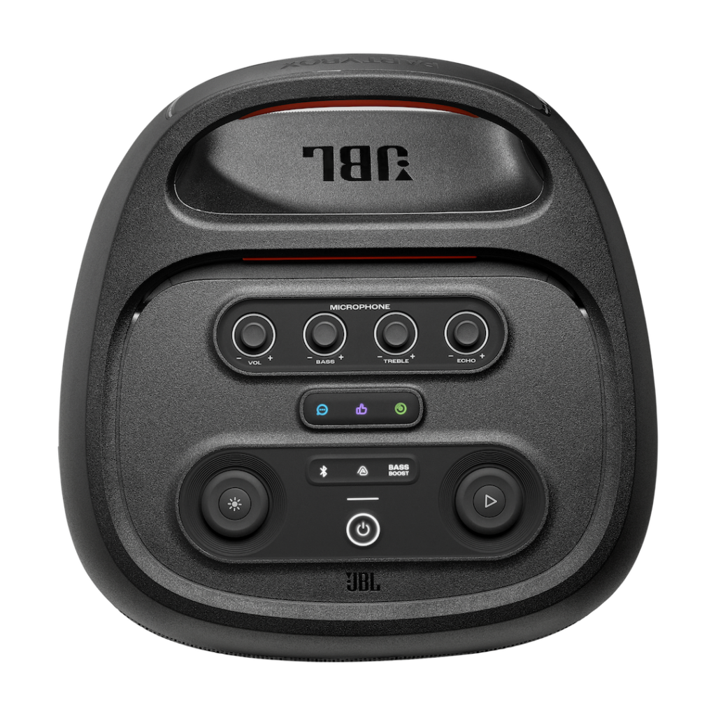 The PartyBox 720’s headline feature is its huge 800W output, powered by two 9-inch woofers that deliver clean, punchy bass even at maximum volume. The speaker incorporates JBL’s latest AI Sound Boost system, which analyses audio in real time to reduce distortion and optimise clarity regardless of how loud the party gets. Users who want an even bigger soundstage can pair two PartyBox 720 units to create stereo output, or link it with any Auracast-enabled JBL speaker to build a multi-speaker setup capable of filling even large venues like basketball courts.