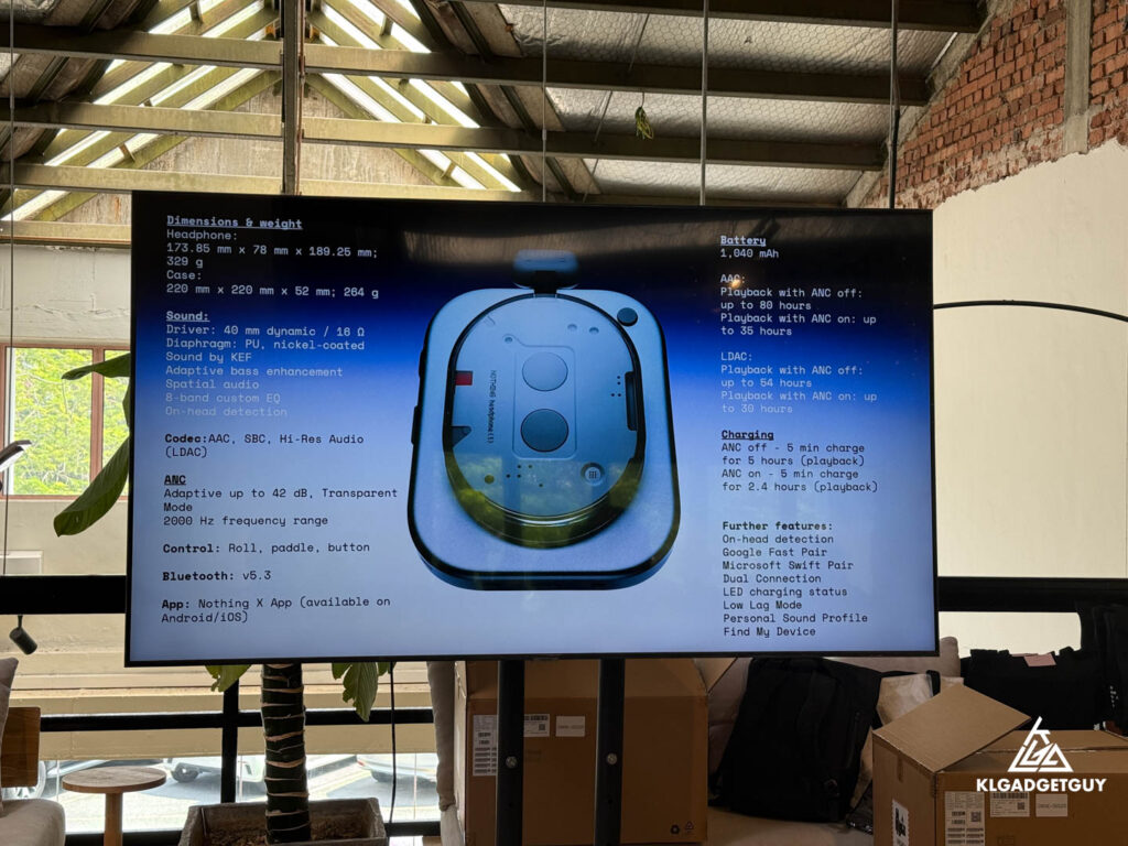 The Nothing Headphone (1) features a custom 40mm dynamic diaphragm driver, its sound has been tuned by British audio company KEF to present authentic sound that the artist originally intended.