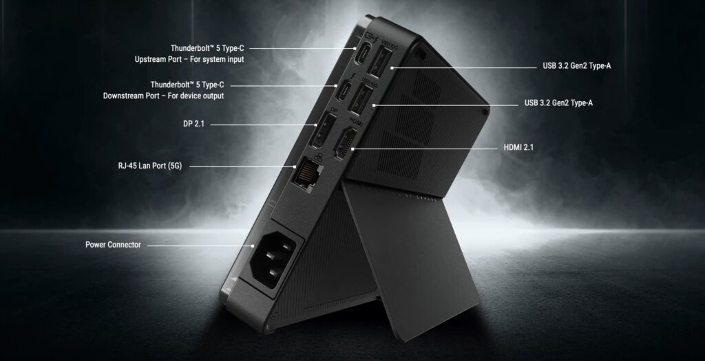 The new model introduces support for Thunderbolt 5, enabling up to 120Gbps bandwidth — enough to power multiple high-refresh-rate 4K monitors, 8K video output and high-speed data transfers over a single cable. Inside, ASUS equips the dock with an NVIDIA GeForce RTX 5070 Ti Laptop GPU, complete with 12GB GDDR7 memory and up to 140W of GPU power, bringing serious performance to compatible ROG laptops.