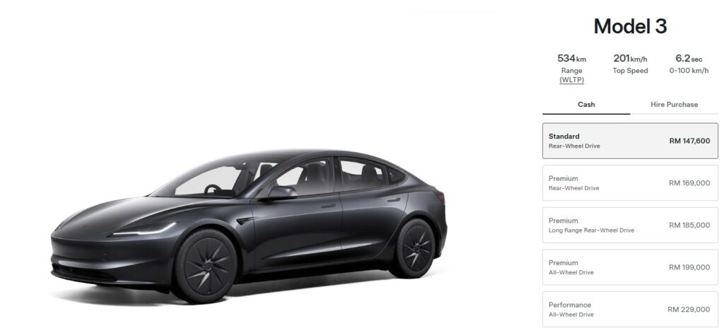 Headlining the announcement is the Model 3 Standard RWD, which is now listed at RM147,600 before options, making it the most affordable Tesla ever offered in Malaysia. The new entry-level variant undercuts the next step up, the Model 3 Premium RWD, by RM21,400, lowering the barrier of entry into Tesla ownership for Malaysian buyers.