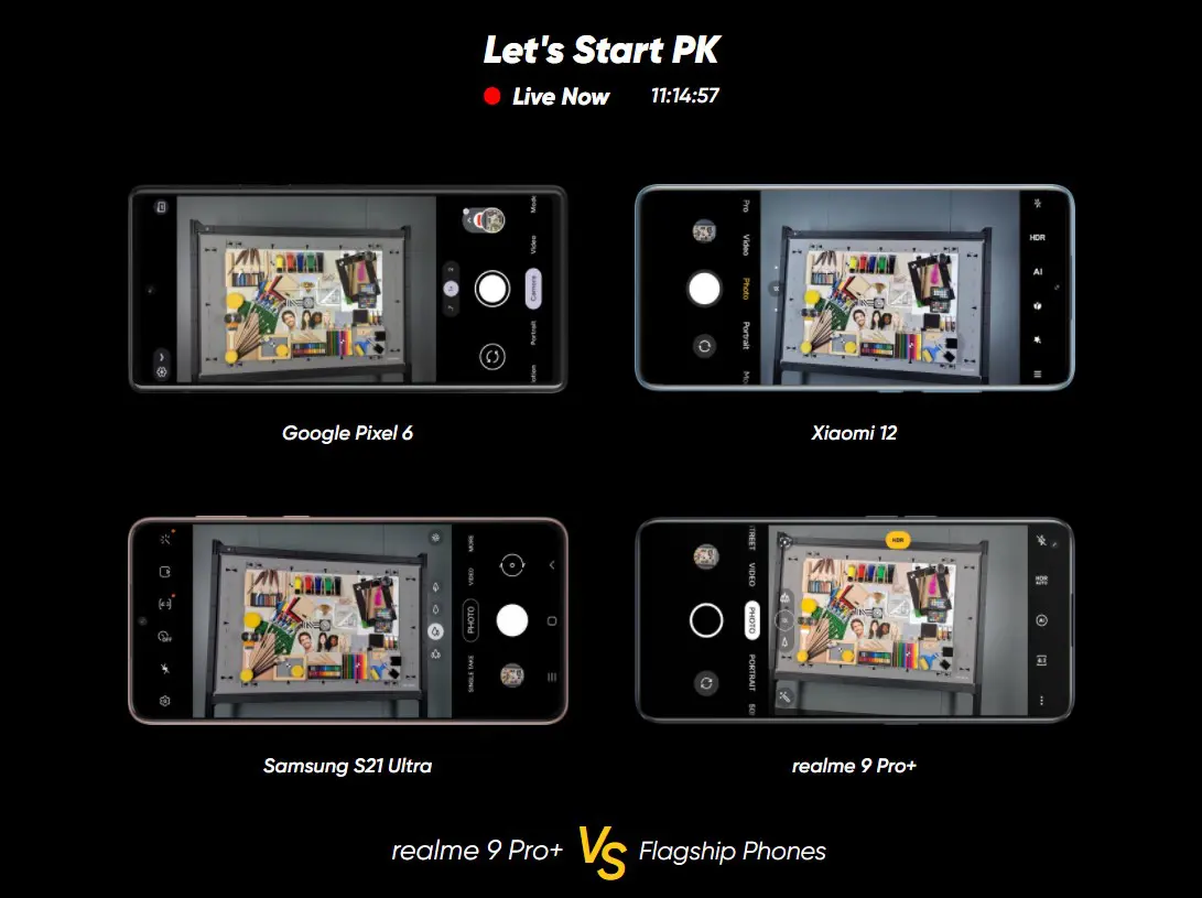 Although there isn’t much details being shared, you are being presented a set of camera sample comparisons against three popular flagships – the Google Pixel 6, Xiaomi 12 and Galaxy S21 Ultra, particularly showcasing their low light performance, which of course the Realme 9 Pro+ reigns supreme and is almost on par with the Galaxy S21 Ultra in most scenarios.