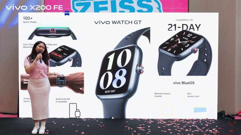 Launched alongside the X200 FE is the vivo Watch GT, vivo’s first square-designed smartwatch. With a 2.5D curved display, 33g lightweight build, and a polished stainless-steel digital crown, it balances style with substance. It supports six professional sports modes, detailed swing tracking for badminton and pickleball, and offers up to 21 days of battery life—the longest in its class.