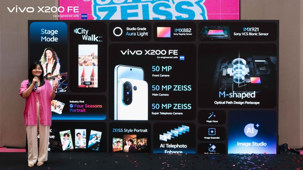 Carrying forward the vivo X Series’ imaging legacy, the X200 FE features a 50MP ZEISS Super Telephoto Camera with Stage Mode, powered by the Sony IMX882 sensor and AI Telephoto Enhance. The trapezoidal prism periscope lens enables high-end optical zoom in a slim module, supporting ZEISS Multifocal Portraits at 23mm, 35mm, 50mm, 85mm, and 100mm.