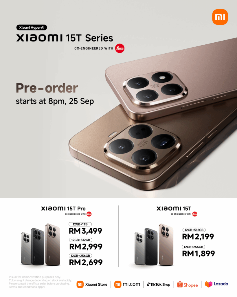 Pre-orders for the Xiaomi 15T Series run until October 2, 2025, with sales beginning October 3 across Xiaomi stores, mi.com, Shopee and Lazada.